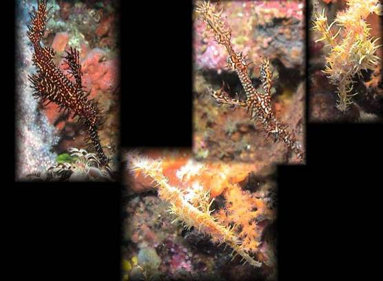 Auch den schwierig zu entdeckenden und noch schwieriger zu fotografiernden Fetzengeisterpfeifenfisch (Solenostomus paradoxus) gibt es reichlich