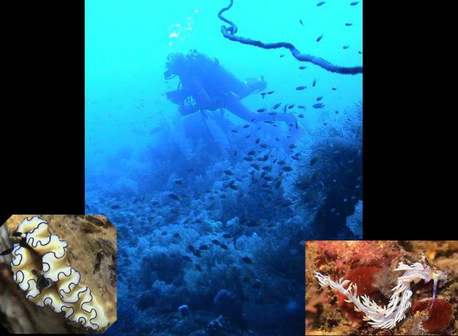 Die Tauchplätze sind schön, es gibt viel zu sehen, der Korallenbewuchs ist gut, sowohl Hartkorallen wie auch Weichkorallen reichlich vertreten, keine Korallenbleiche und auch kaum Dynamit-Löcher im Riff zu finden. Prachtschneckenart (Glossodoris atromarinata) und Fadenschneckeart (Pteraeolidia lanthina)