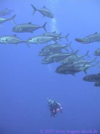 Makrelen begleiteten uns auch bei der Suche nach großen pelargalen Haien