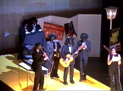 Die erste Gruppe auf der Bühne im Haus der Stadt